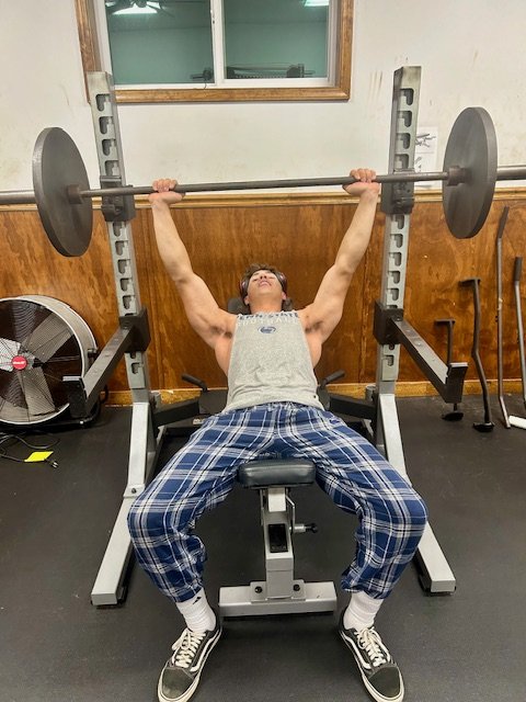New collegiate rack and adjustable incline weight bench. Funding provided by Clinton County Community Foundation.